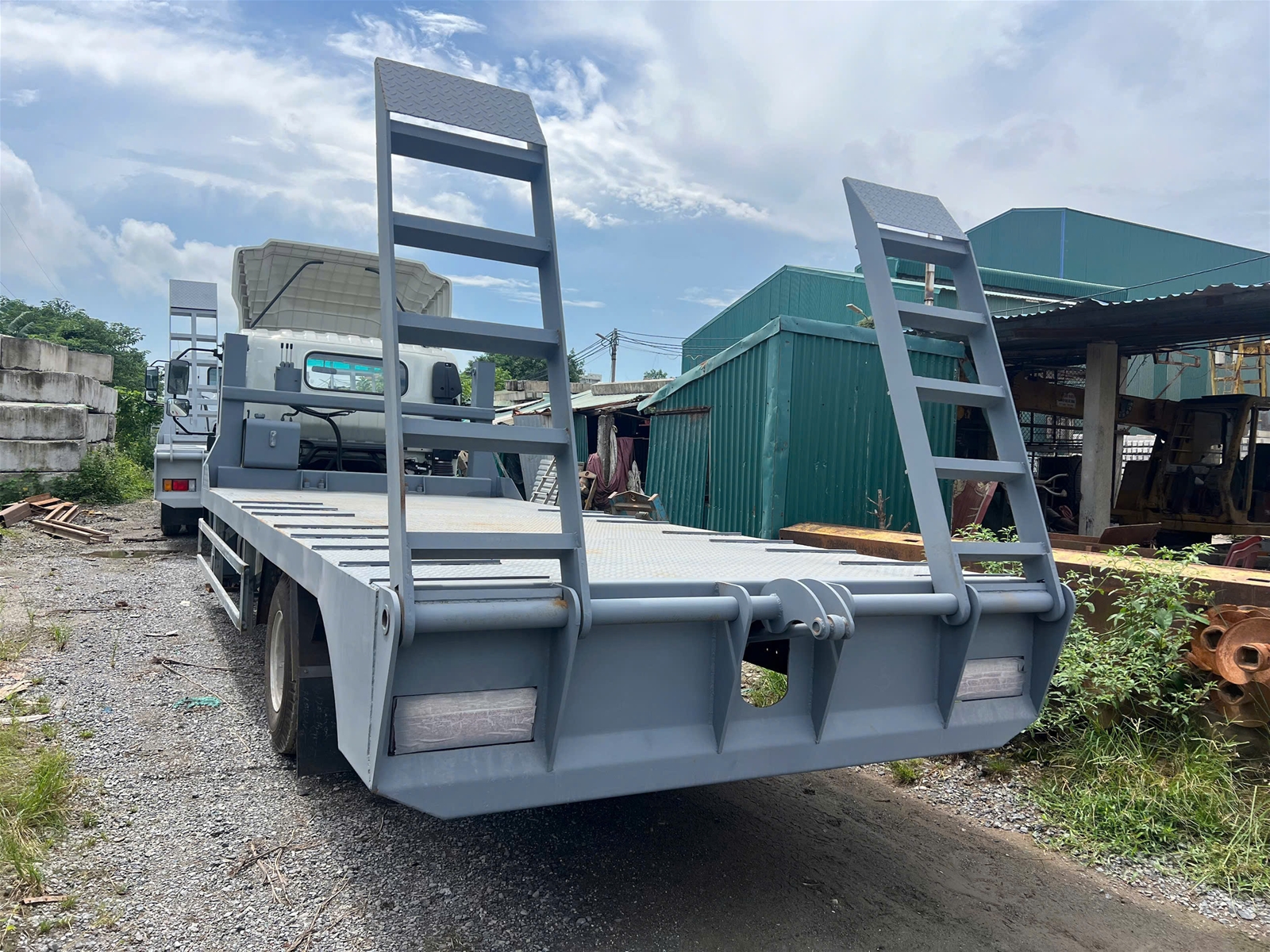 + Các chi tiết phụ khác: Chắn bùn dày 0,5mm. Cản hông. Cản sau. Đệm lót cao su giữa sát xi chính và dầm dọc thùng. Đèn sườn thùng 06 cái.